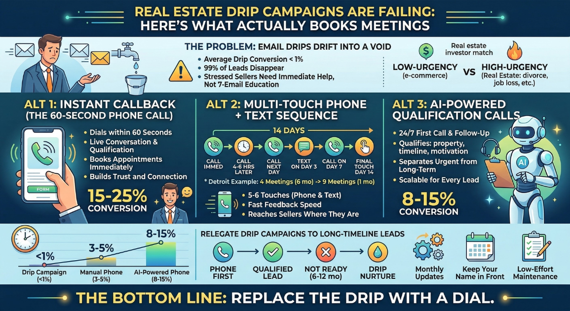 An investor in Cincinnati had a solid script. He'd practiced it. His close rate on connected calls was good, one in four conversations turned into an appointment. The problem was he was only connecting on 30% of his callbacks because he was calling 2-6 hours after submission. Most sellers didn't answer. The ones who did were already cooling off.